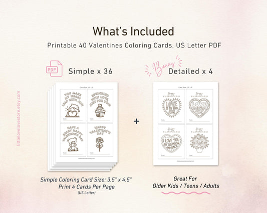 Cuter Valentines Coloring Cards for Kids | A Set of 4 Printable Cards