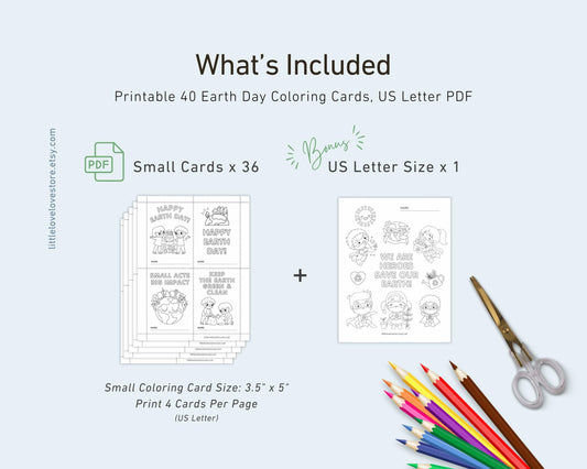 Earth Day Coloring Cards for Kids | A set of 40 Cards for Coloring Activity