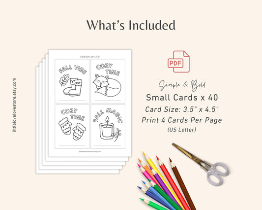 Fall / Autumn Coloring Cards For Kids Activity | 40 Unique Designs