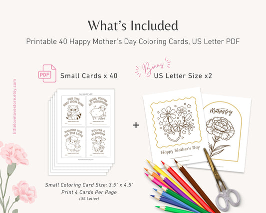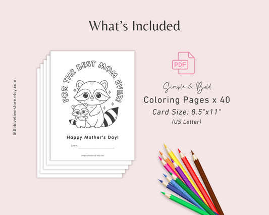 40 Mother's Day Cute Coloring Cards for Kids
