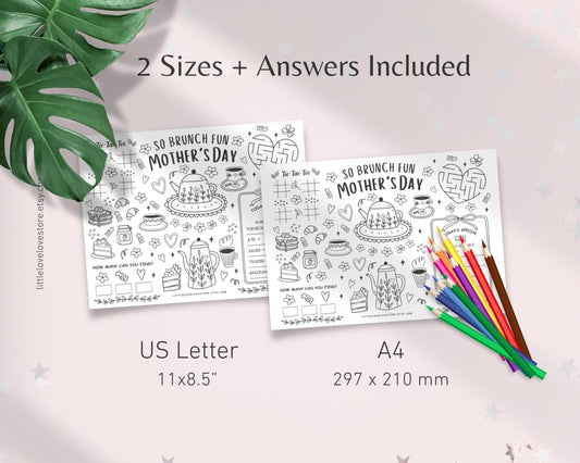 Mothers Day Coloring Placemat | Tea Party Games | Kids Activity Sheet
