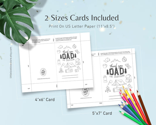 Thank You Dad Coloring Card – Camping Theme | Father’s Day Printable for Kids
