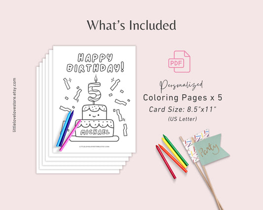 Personalized Birthday Coloring Pages for Kids - 5 Pages