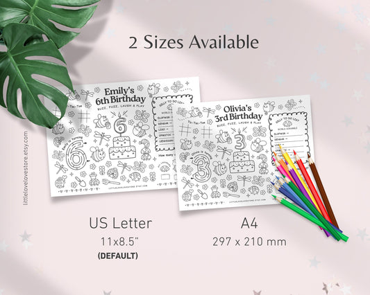 Personalized Birthday Paper Placemat | Coloring & Puzzle Activities