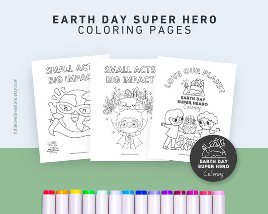 Earth Day Coloring Pages for Kids | Earth Day Super Hero Theme x 12 Pages